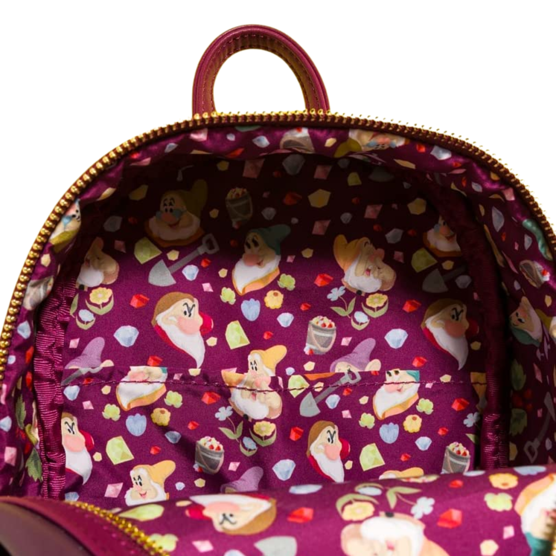 Dotted with diamantés that twinkle as they catch the light, this beautifully-crafted bag shows Dopey, Doc, Bashful, Sneezy, Happy, Grumpy, Sleepy down in the mines, and is finished with printed gems on the back.
