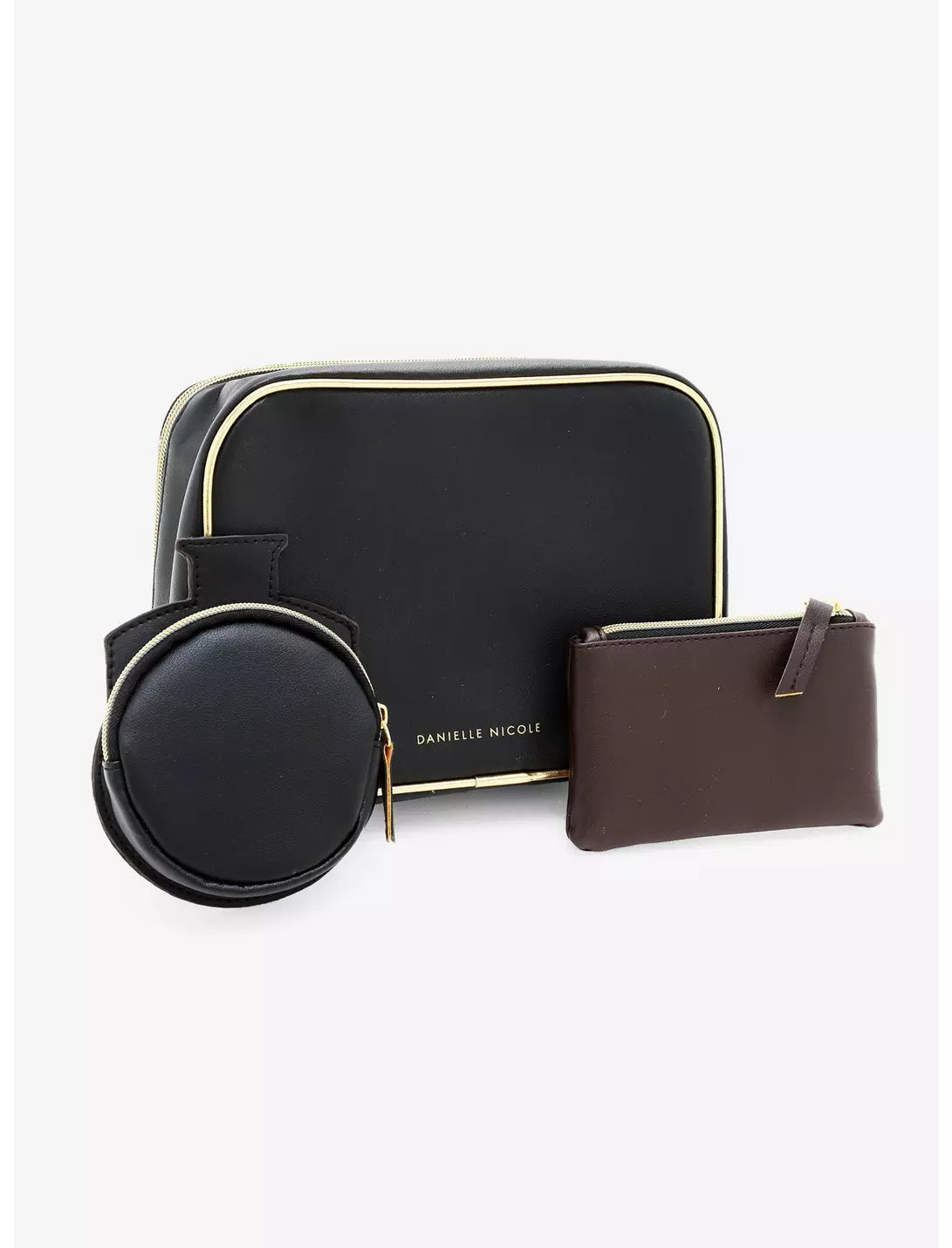 This makeup bag set from Harry Potter includes a faux leather bag with a clear window and "Platform 9 3/4" text design. As for the two smaller pouches, one has a Platform 9 3/4 ticket-inspired design and the other has a design inspired by the front of the train.