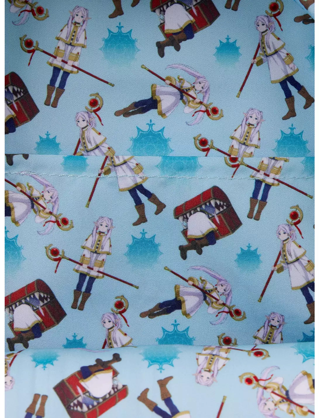 Prepare for your next journey with this Frieren: Beyond Journey's End mini backpack! Modeled after Frieren's look, this bag includes her staff as the zipper pull.