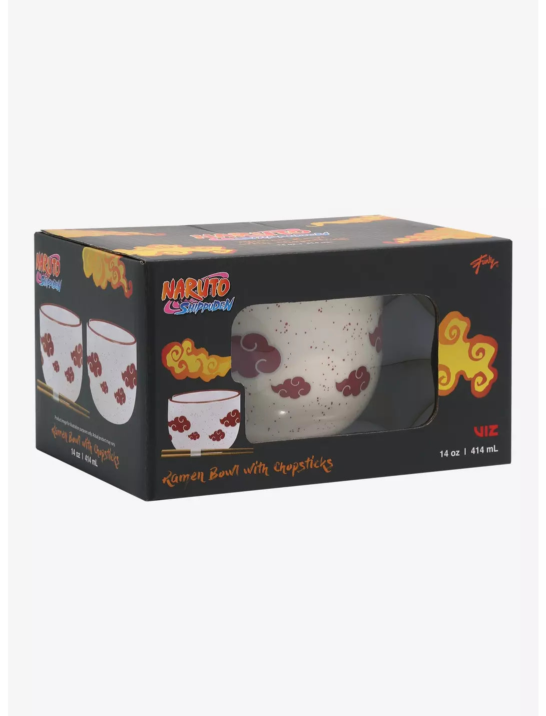 Indulge yourself in a delicious bowl of Ichiraku-style ramen! This delightful Naruto Shippden inspired ceramic ramen bowl features the iconic red Akatsuki cloud on a cream background speckled with red. A set of bamboo chopsticks is included!