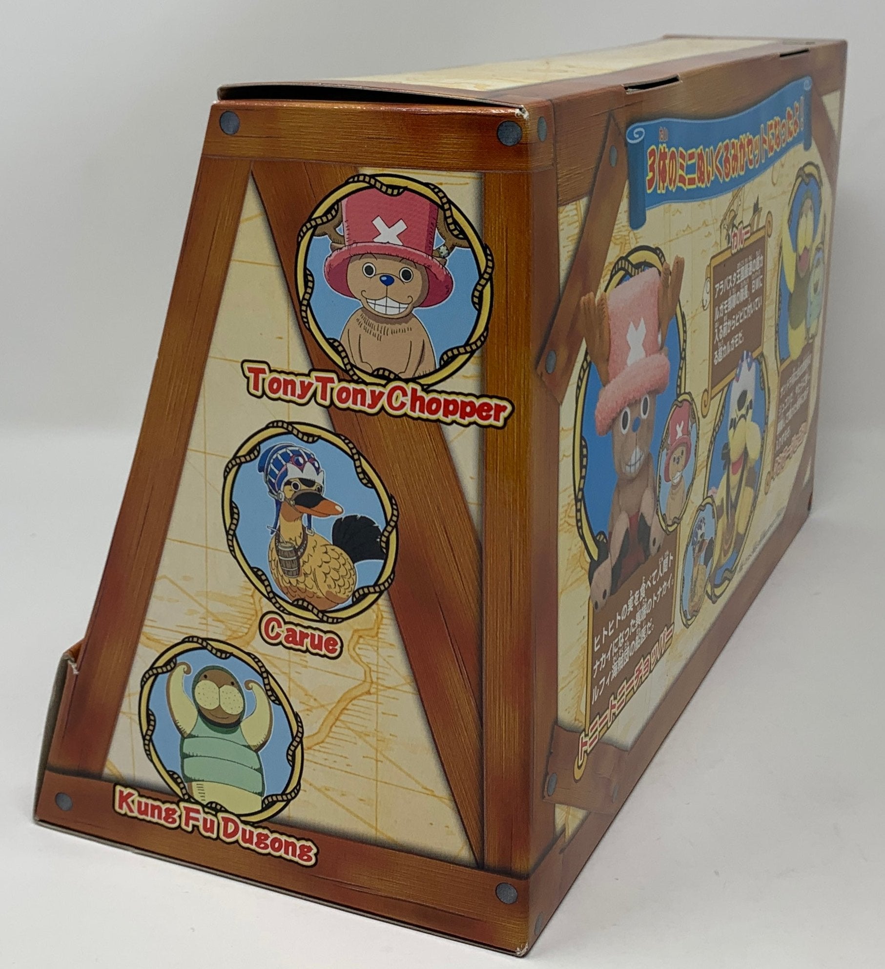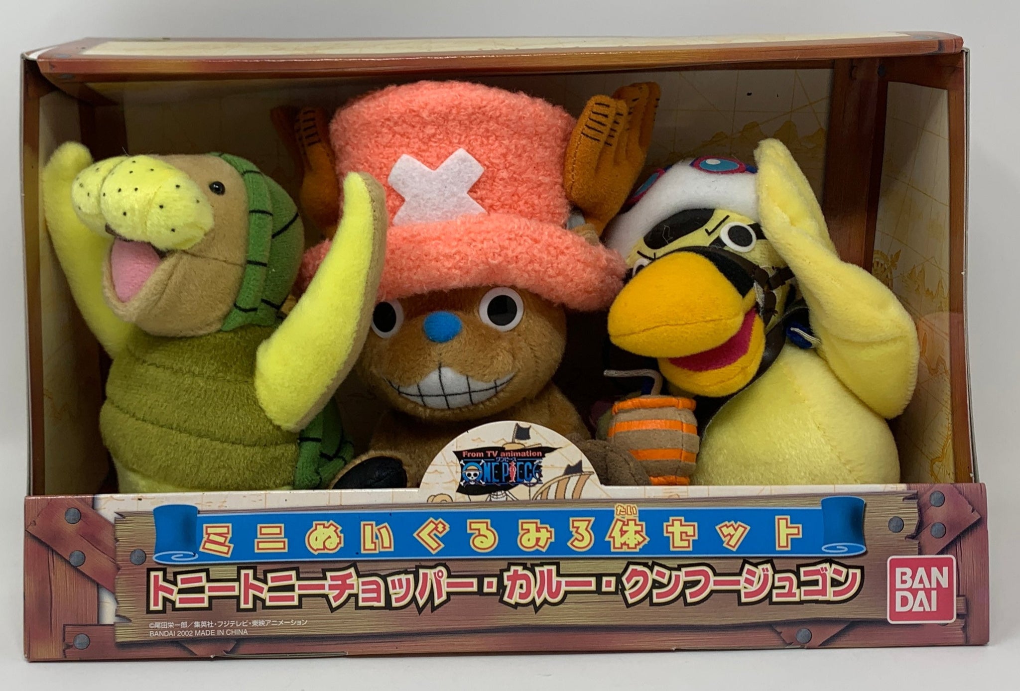 This set, released by Bandai in 2002, reimagines Tony Tony Chopper, Karoo, and Kung Fu Dugong in adorable and cuddly plush forms!