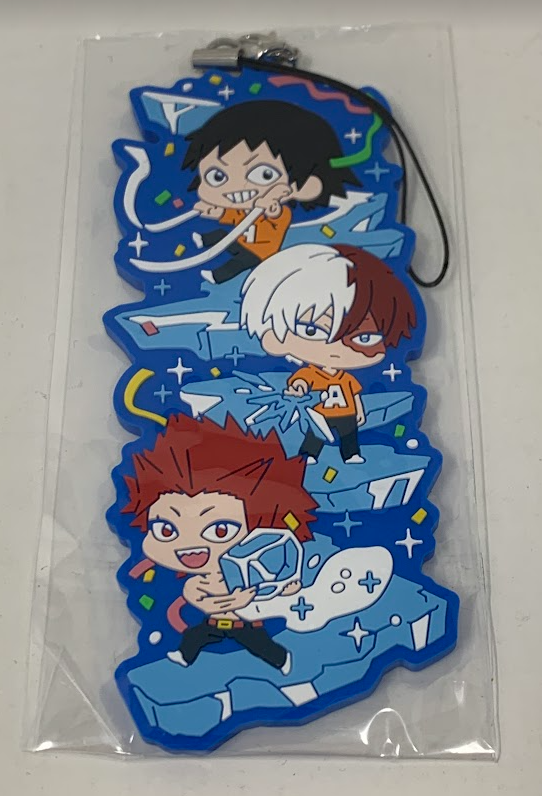 This cute rubber strap from Wachatto! features Sero, Todoroki, and Kirishima hard at work helping out backstage at the cultural festival! It's a cool addition to any My Hero Academia collection!