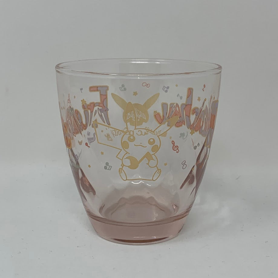 From the "Pokemon: Pikachu & Friends Music Party" Lottery, this is the F Prize! It is a flared glass cup with a pink tint, featuring Pikachu and music notes