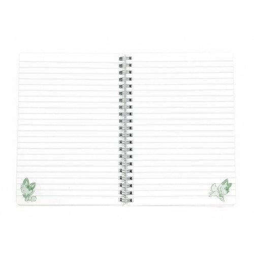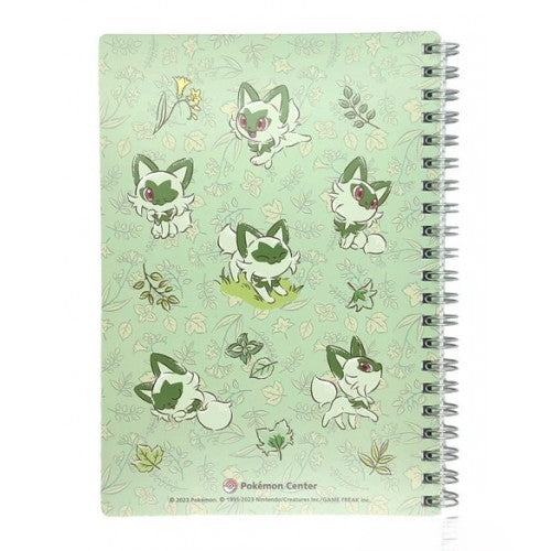 Pokemon Center 2023 Nya! Nya Nya! Sprigatito campaign small spiral notebook .It is B6 size, so it is smaller than normal size notebooks. Its a good compact size to take with you in your bag. There are lined pages inside with Sprigatito on the bottom.