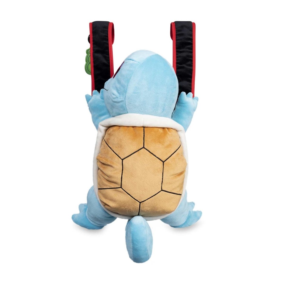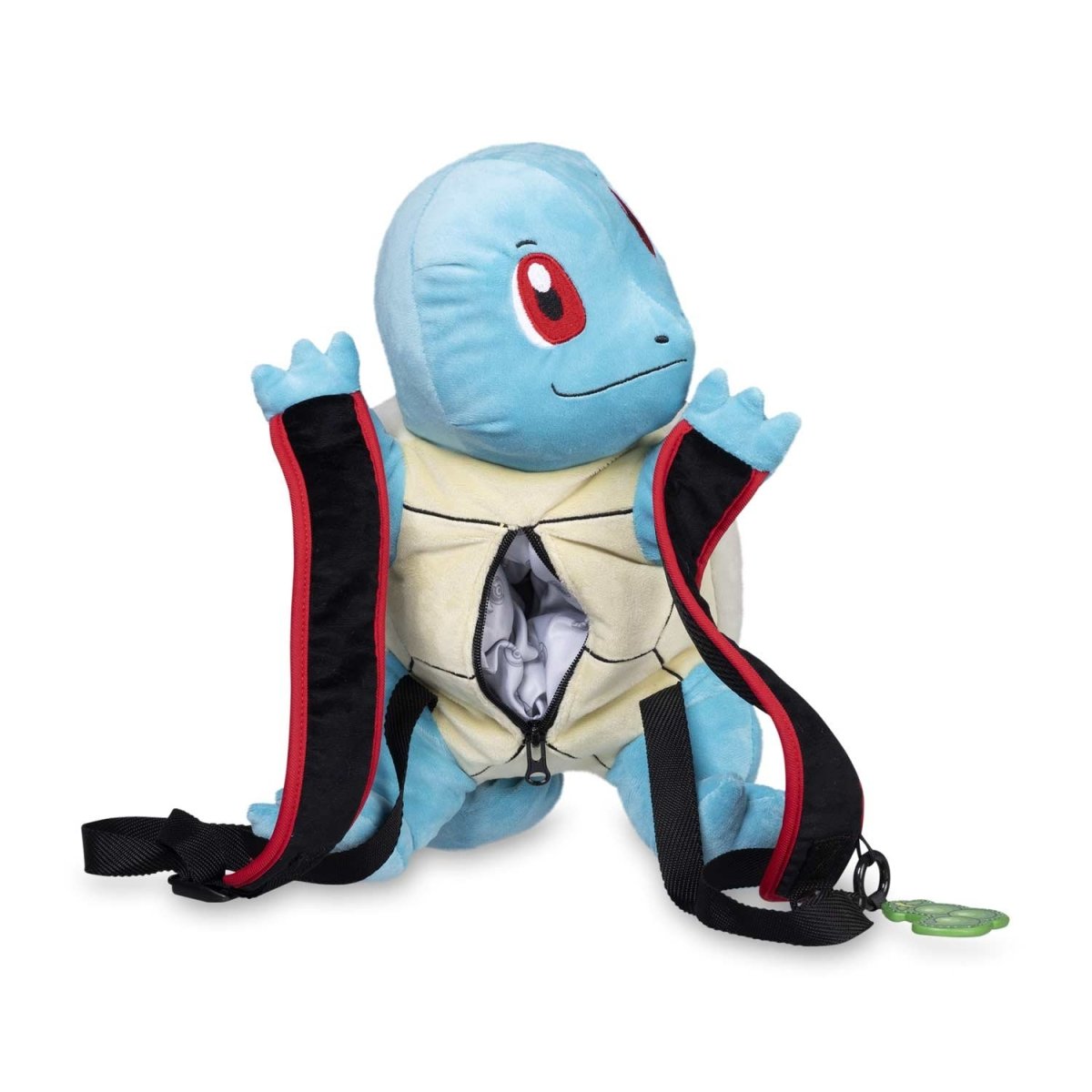 A day out and about is much more fun with a Pokémon partner! This adorable plush Squirtle is ready to hitch a ride on your back, and it's well prepared with a Rindo Berry charm to help reduce damage from supereffective Grass-type attacks. A zipper on the belly of the plush opens to reveal a small storage compartment where you can hide your keys or spare change.