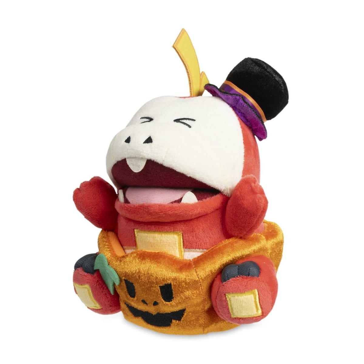 What's a bit silly, a bit spooky, and a whole lot of fun? It's the Pokemon Halloween collection! This Fuecoco plush features the Fire Croc Pokemon looking ready to celebrate in a pumpkin costume and tiny top hat. Its expression could mean it's either scared or trying to be scary; either way, Fuecoco makes an excellent addition to Halloween decor!