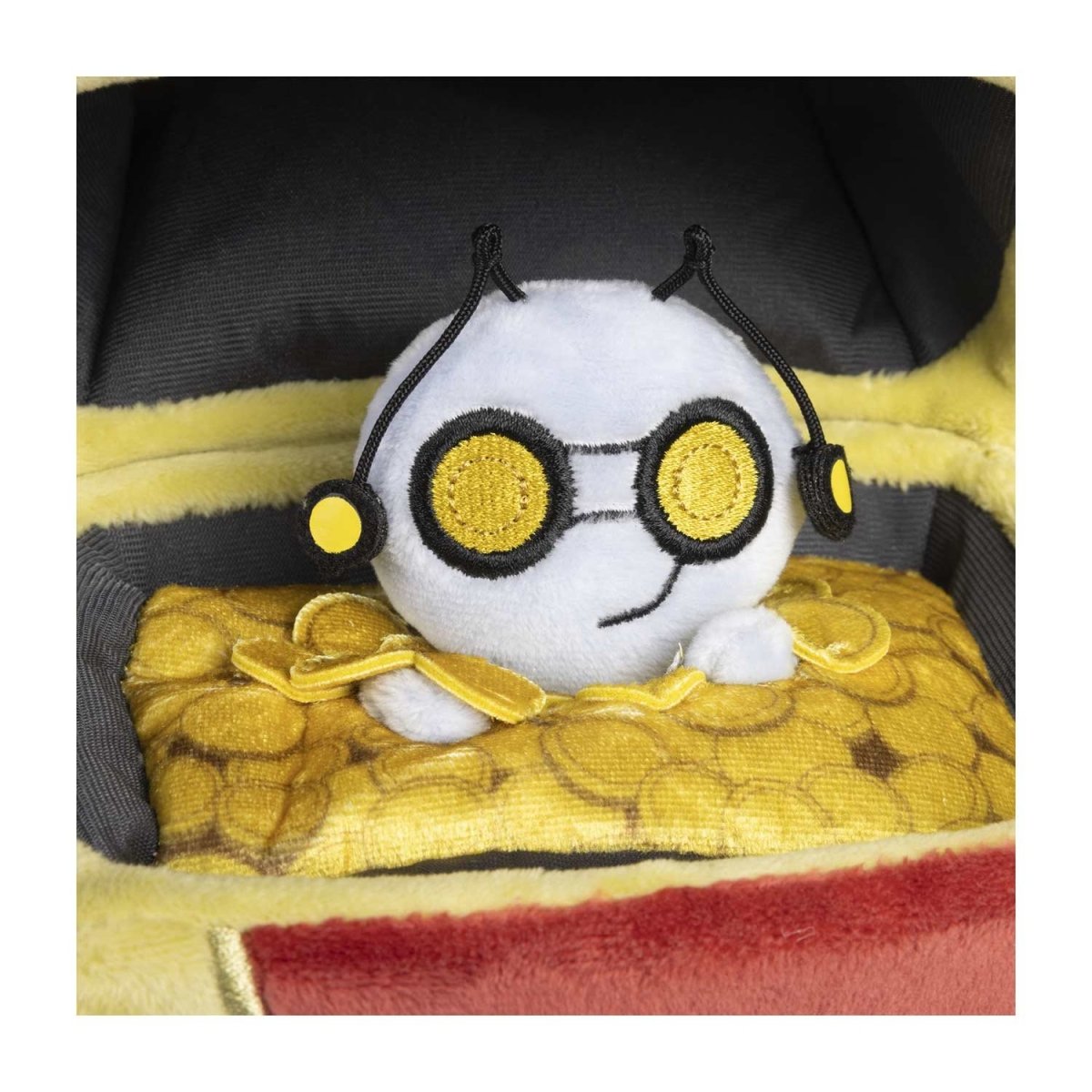Poké Plush are here, and they are eager to join your collection! While Gimmighoul can get angry when someone tries to take its coins, this plush version of the Coin Chest Pokémon is happy to stay put on a shelf, bookcase, or desk with your other treasures to create a cheerful space!