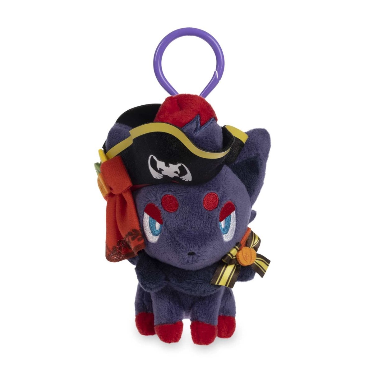 What's a bit silly, a bit spooky, and a whole lot of fun? It's the Pokemon Spooky Festival! This adorable Zorua plush key chain features the Tricky Fox Pokémon ready to celebrate with two pumpkin bows and a pirate hat featuring a Doublade silhouette! With a clip on top, this Zorua plush will do best riding on your backpack or lanyard.