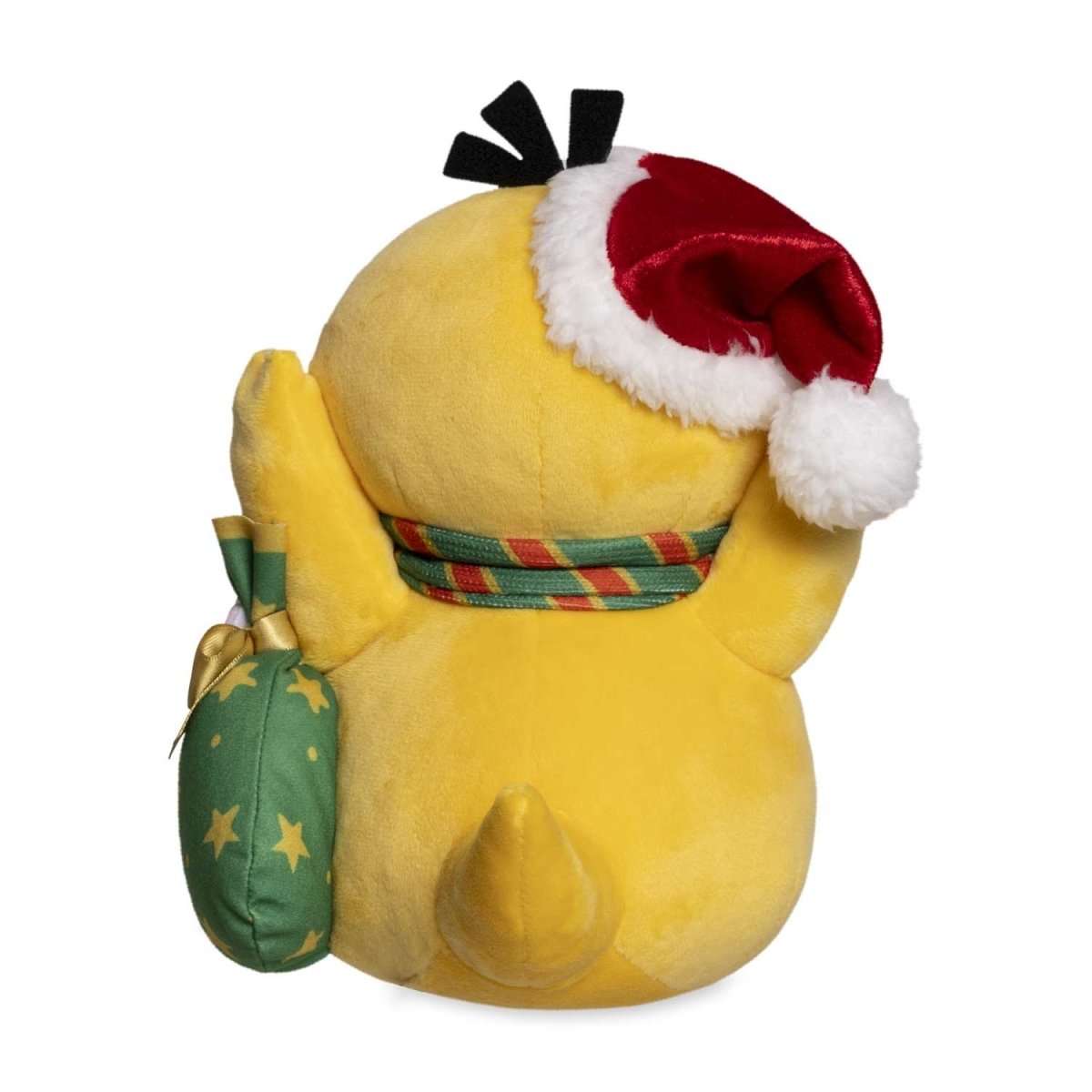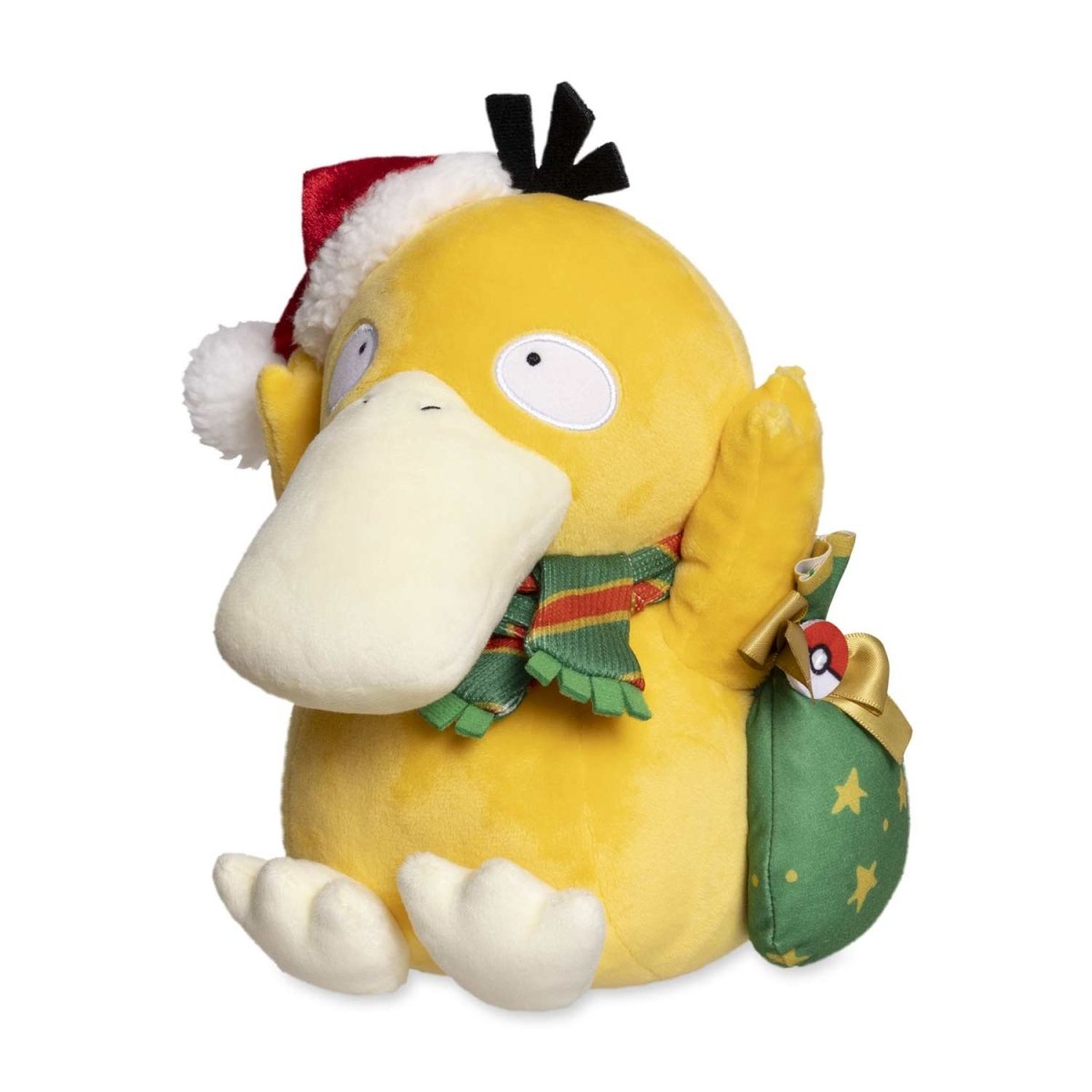 Now, we can't be entirely sure whether Psyduck understands why it's wearing a jaunty Santa cap and sitting among presents, but it sure does look cute! Luckily, it's happy to celebrate with friends regardless. A striped scarf is also wrapped around the befuddled-looking plush, adding to the air of festivity.