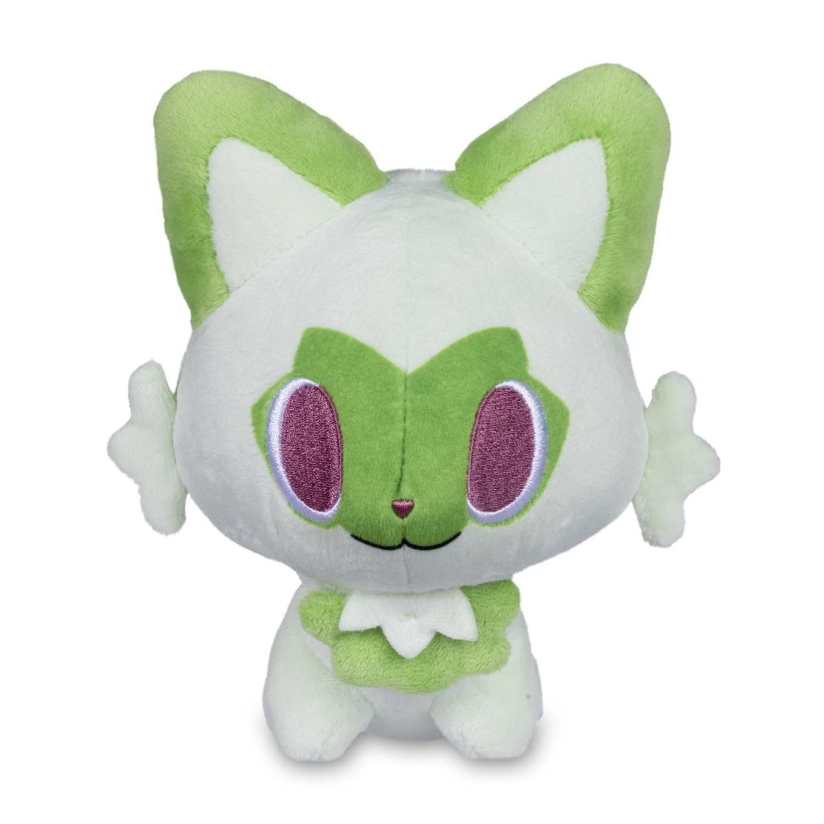 The stealthy Grass-type first partner Pokemon from the Paldea region is here as an adorably big-headed Pokemon Dolls plush! With charmingly large ears, tiny little paws, and a cute pink nose, Sprigatito is sure to make one happy addition to any Pokemon fan's collection!