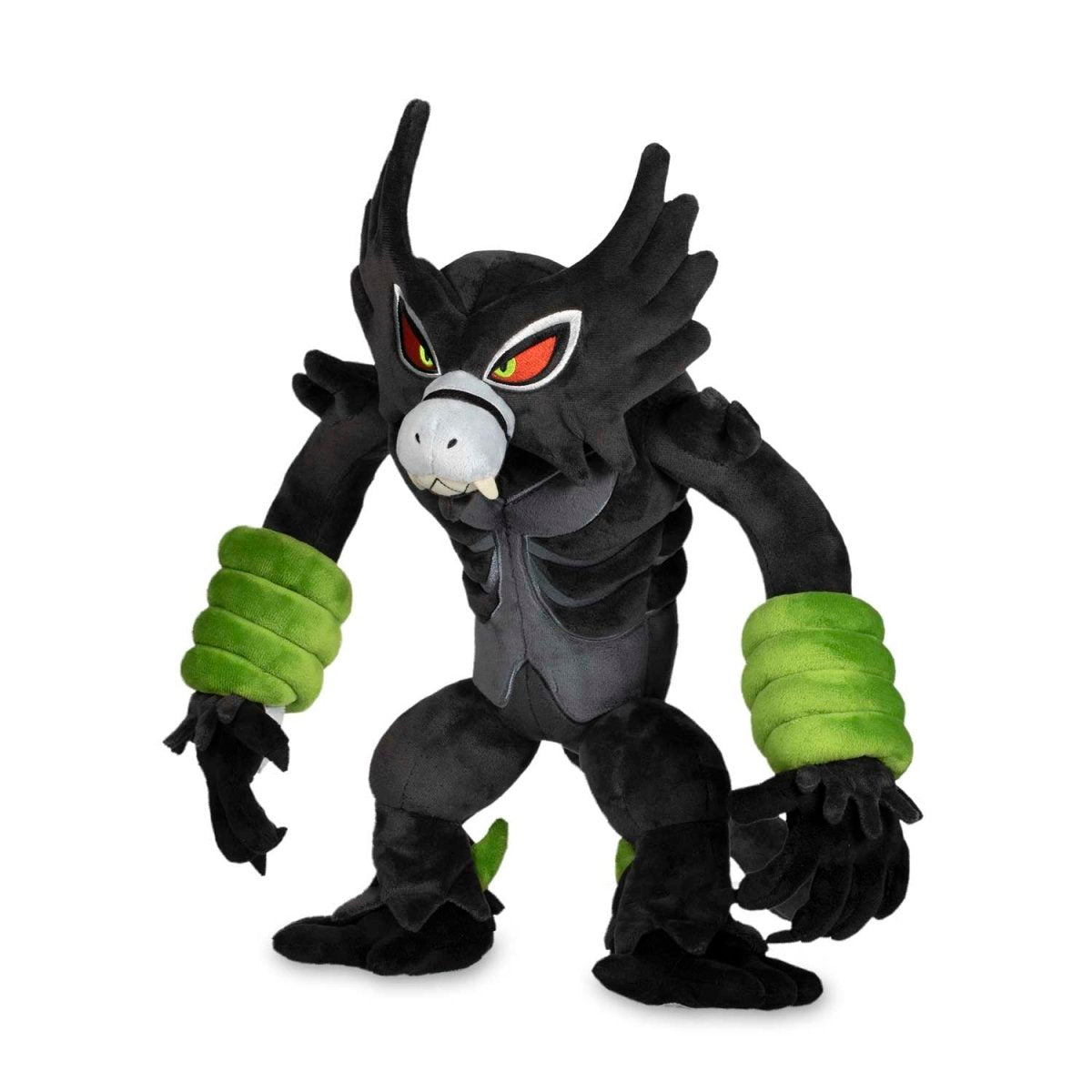 The tall and glowering Zarude Poke Plush shows this Dark- and Grass-type Mythical Pokémon in full form, red eyes, fangs, crests, and all—a mighty fierce plush! Add this fearsome creature to your Pokemon plush collection!