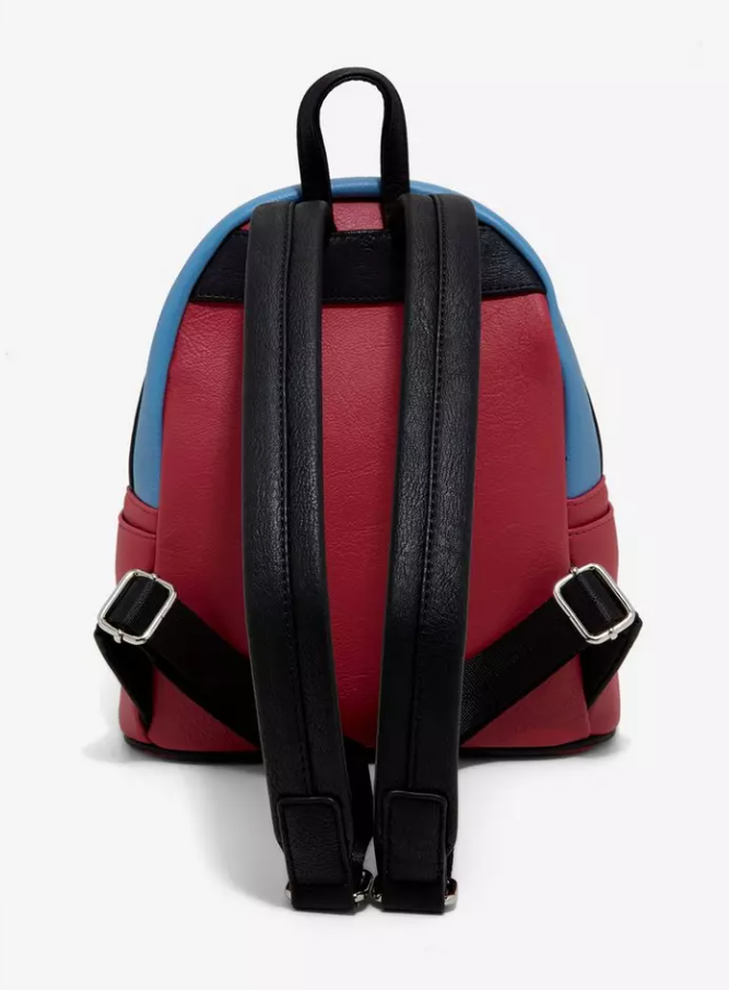 Stuff all the waffles in here! This mini backpack inspired by the first season of Stranger Things features a red & blue color-block design with embroidered silhouettes of Mike, Eleven, Lucas and Dustin on bicycles and a Demogorgon below in the Upside Down. There's even an interior lining of Eleven's favorite food: waffles! If you get thirsty while biking, there are water bottle pockets on both side. Interior zipper pocket, front zipper pocket, silver tone hardware and adjustable padded straps.