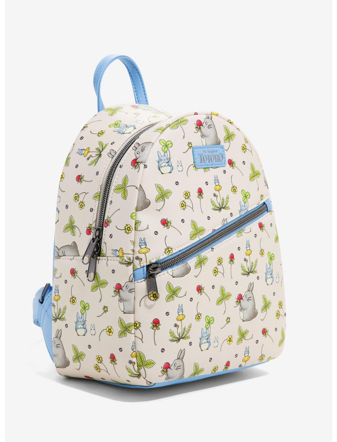 Time to go berry picking with some friendly forest spirits! This mini backpack is perfect for any adventures with Totoro. Start your foraging in Studio Ghibli style with this My Neighbor Totoro mini backpack, featuring an allover print of different Totoros and forest plants. Comes with a diagonal front zipper pocket, gunmetal tone hardware and interior drop pocket.