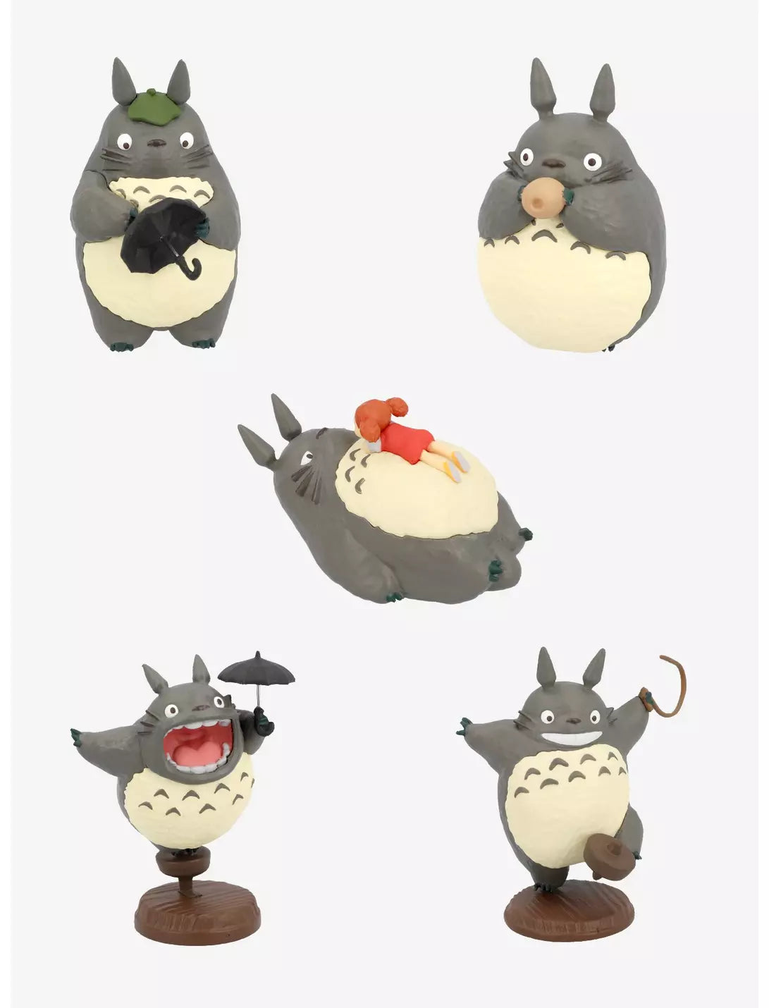 Inspired by Studio Ghibli's classic My Neighbor Totoro, this blind box assortment features 6 new figures of the friendly forest spirit in joyful and adorable poses, including 2 with an umbrella, one playing the clay flute, one playing with a top, and one lounging with Mai! Which will you get? It's a surprise!